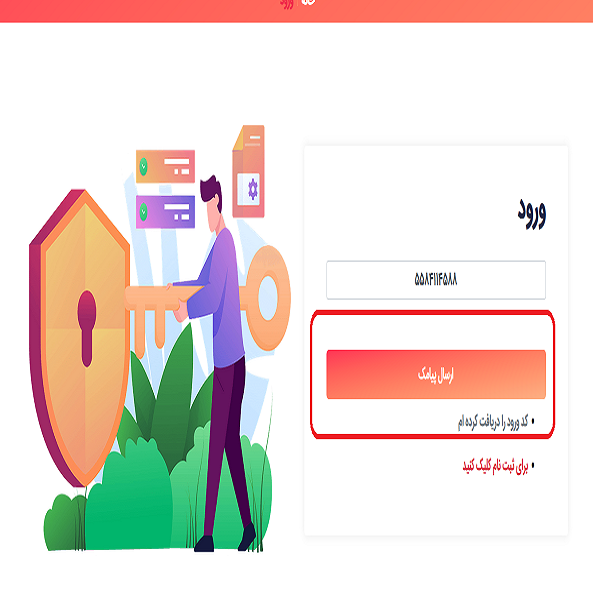 سپس ارسال پیامک را انتخاب کنید ( پیامک فعال ساز به شماره موبایل 1 که در صفحه ثبت نام وارد کردید ارسال می شود).