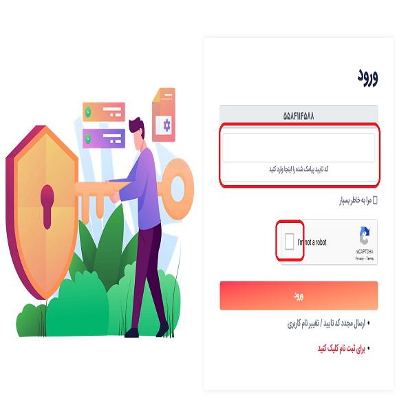 کد تائید ارسال شده ( تمامی پیامک ها از سرشماره 5000410410 ارسال می شود) را وارد کنید و تیک I'm not a robot را انتخاب کنید .