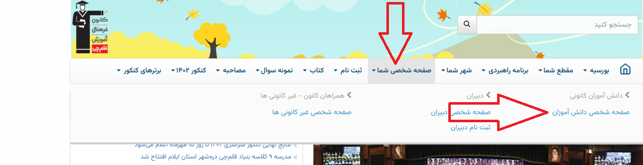 2 - صفحه شخصی شما را انتخاب کنید و وارد صفحه شخصی دانش آموز شوید(مطابق تصویر) از لینک ورود مستقیم به صفحه شخصی هم میتوانید وارد صفحه خود شوید.