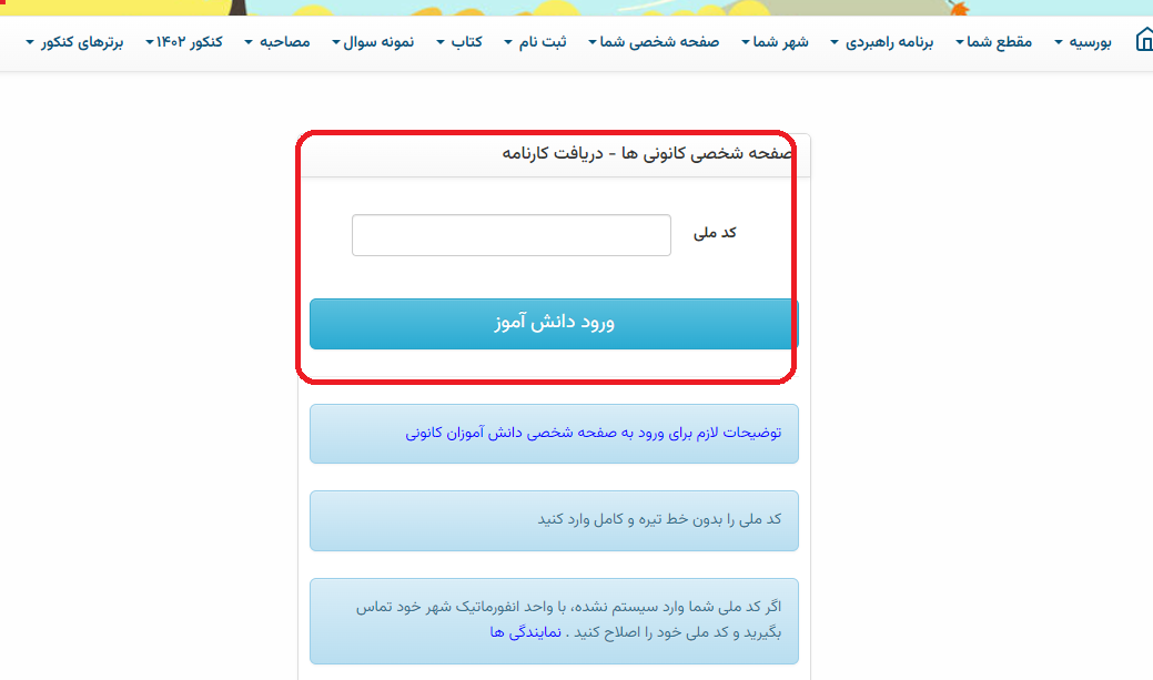 3 - نام کاربری ارسال شده را وارد کنید و ورود دانش آموز را انتخاب کنید
